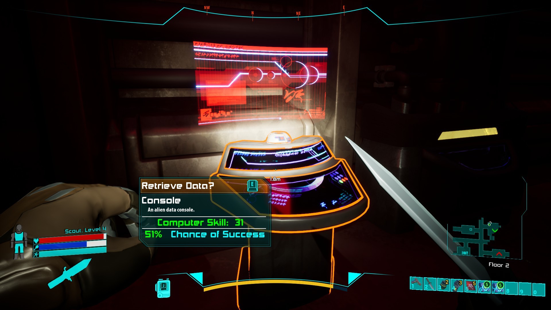While our initial intentions were to keep the mechanics as close as we could to the original, the realities of a real-time first-person system necessitated adjustments. Instead of a ‘chance-to-hit’, the system became ‘quality-of-hit’ whereby player “accuracy” (i.e., actually hitting a target) was based on their own inputs, but the damage dealt was affected by the other systems of the game (damage types, resistances, weapon types, skills, etc).